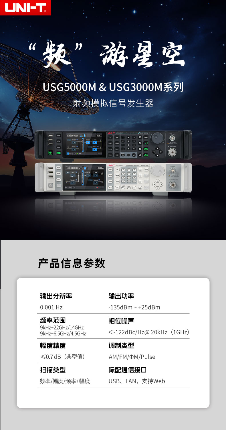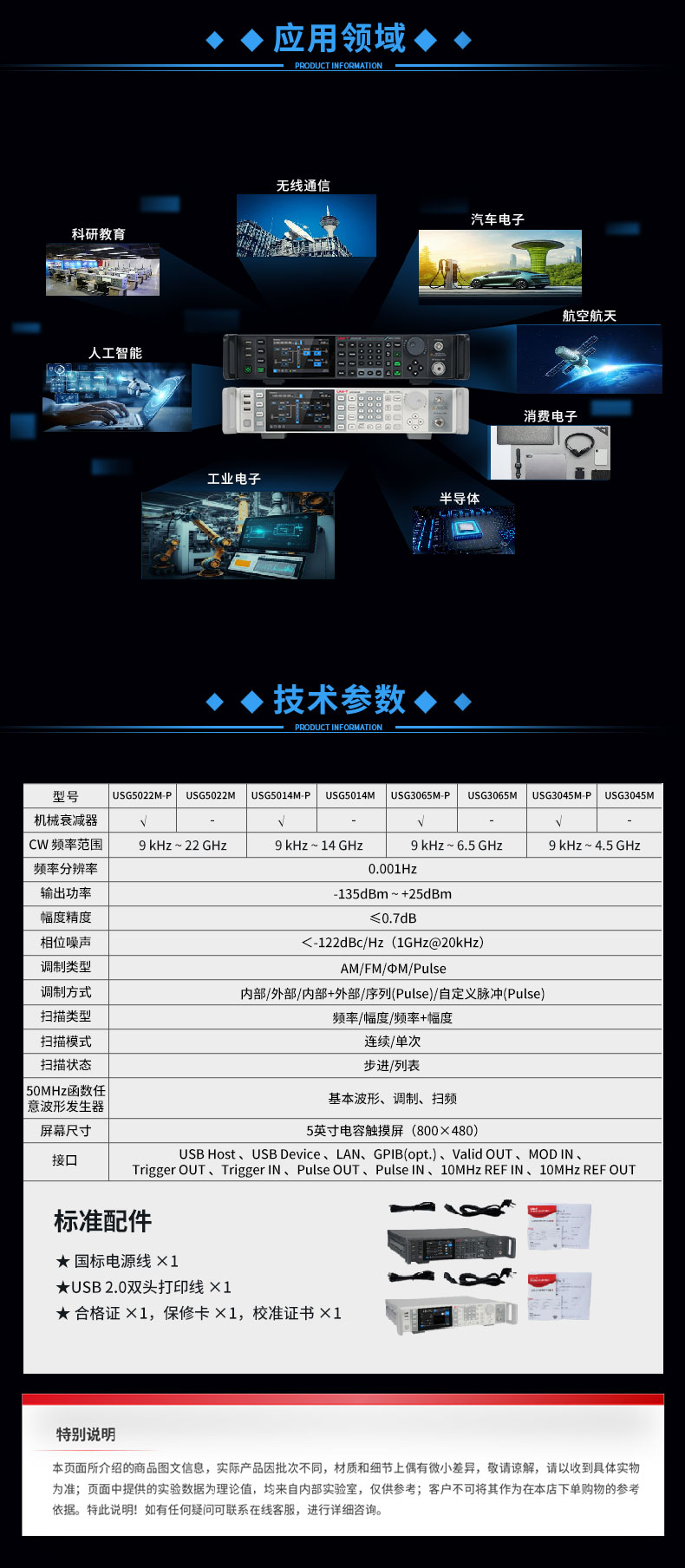 USG5000M系列整機(jī)采用2U標(biāo)準(zhǔn)高度機(jī)箱,輸出頻率高達(dá)22GHz,頻率分辨率小于1mHz,較寬的頻率覆蓋范圍,可以用于本振上變頻或者連續(xù)波阻塞的測(cè)試。在功率輸出方面,最大可輸出+25dBm及-60dBc雜散抑制,配合我們精確的步進(jìn)衰減器,更適用于微波元器件,它可以為濾波器、放大器、接收機(jī)等器件及模組測(cè)試提供必要的信號(hào)。 USG3000M系列整機(jī)采用2U標(biāo)準(zhǔn)高度機(jī)箱,輸出頻率高達(dá)6.5GHz,頻率分辨率小于1mHz,較寬的頻率覆蓋范圍,可以用于本振上變頻或者連續(xù)波阻塞的測(cè)試。在功率輸出方面,最大可輸出+25dBm及-60dBc雜散抑制,配合我們精確的步進(jìn)衰減器,更適用于微波元器件,它可以為濾波器、放大器、接收機(jī)等器件及模組測(cè)試提供必要的信號(hào)。